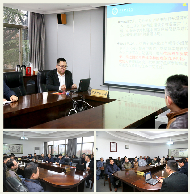 12月5日,受安徽省高校管理大数据研究中心邀请,南京晓庄学院陶行知研究院、教育研究院副院长刘大伟博士在行政楼第一会议室做了题为“教育智库的可为与有为——基于CETTE的调查报告”的学术讲座。校党委常委、研究中心主任韦法云主持报告会,研究中心各方向部分研究人员40余人听取了报告。